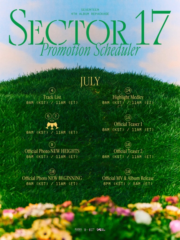 이어 세븐틴은 28일 공식 SNS에 내달 18일 오후 6시 발매되는 정규 4집 리패키지 앨범 '섹터 17'의 프로모션 스케줄러 이미지를 공개했다.