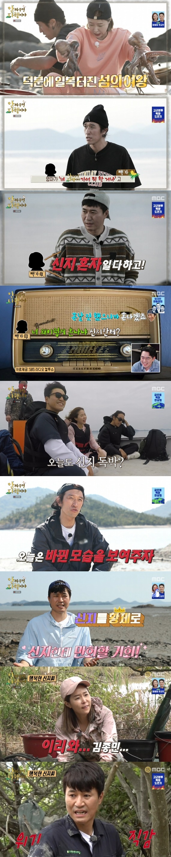 이어 빽가는 "바뀐 모습을 보여주자, 신지가 다하지 않는다는 걸 보여주고 싶었다"라고 결연한 의지를 다졌다. 김종민 역시 "신지에게 만회하자, 황제처럼 편하게 해주자"라고 넘치는 의욕을 드러냈다. 그러나 코요태는 무인도 입성부터 물때를 잘못 맞춰 갯벌을 기어 다니며 고군분투했고, 결국 신지가 해루질부터 간재미 손질까지 나서서 활약하는 모습으로 재미를 더했다.