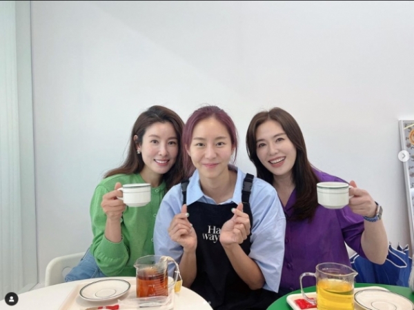 사진 속 유이는 하희라와 이태란의 사이에서 포즈를 취했다. 정다운 세 사람의 모습이 따뜻한 분위기를 전달한다.