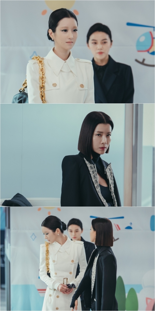 이 가운데 9회 방송을 앞두고 공개된 스틸에는 본색을 감춘 라엘과 그녀를 향한 분노를 품은 소라의 모습이 담겨있어 시선을 사로잡는다. 이는 유치원 학부모 회의에 참석한 두 사람의 모습으로, 라엘은 슬며시 미소를 띠지만 소라는 독기 서린 눈빛으로 그녀를 주시하고 있어 긴장감을 자아낸다.