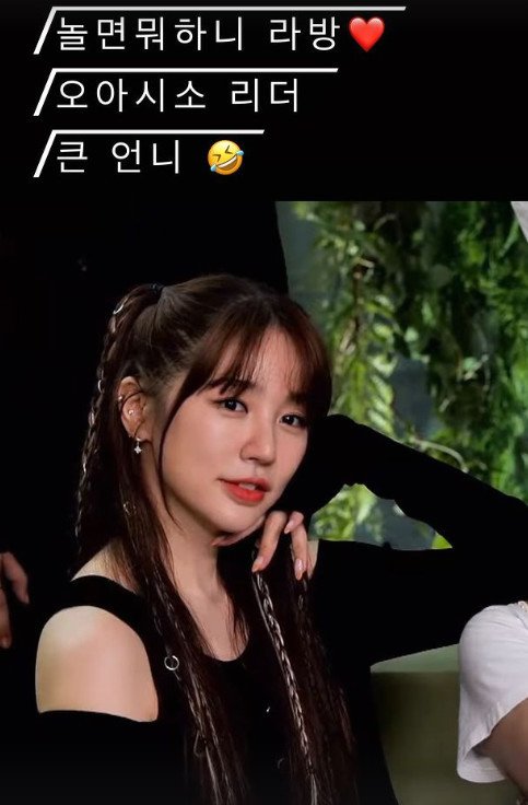 윤은혜는 지난 6월30일 자신의 인스타그램에 "'놀면 뭐하니?' 라방! 오아시소 리더 큰 언니"라는 글과 함께 한 장의 사진을 게재했다.