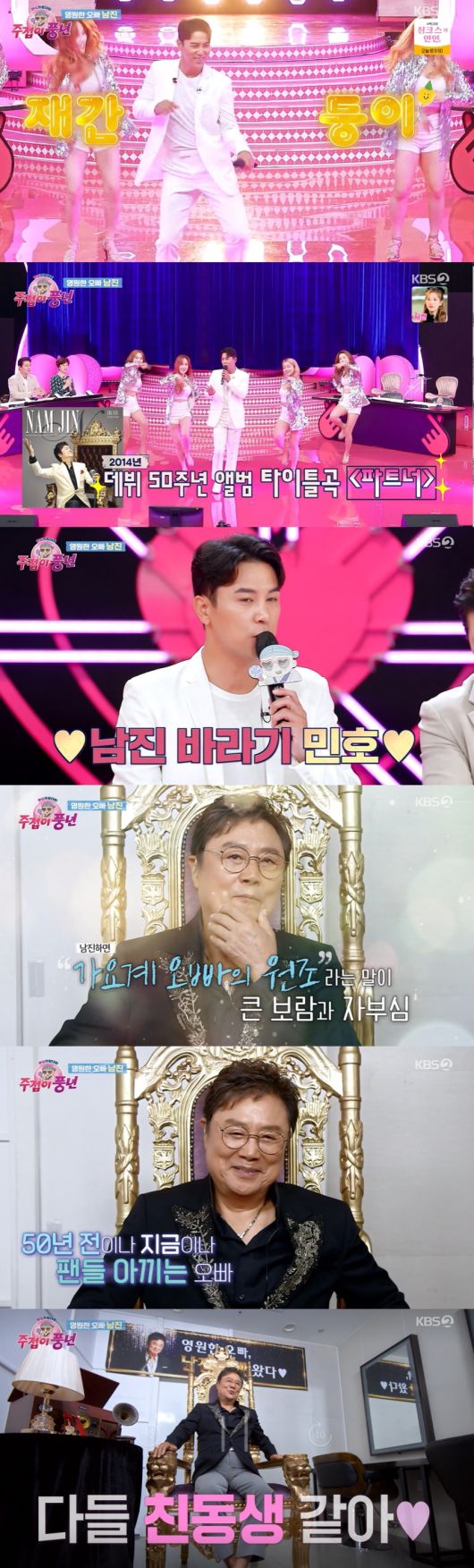 30일 밤 8시 30분 방송된 KBS2TV '주접이 풍년'에서는 가요계의 영원한 오빠 남진과 그의 주접단의 특별한 만남이 그려졌다.
