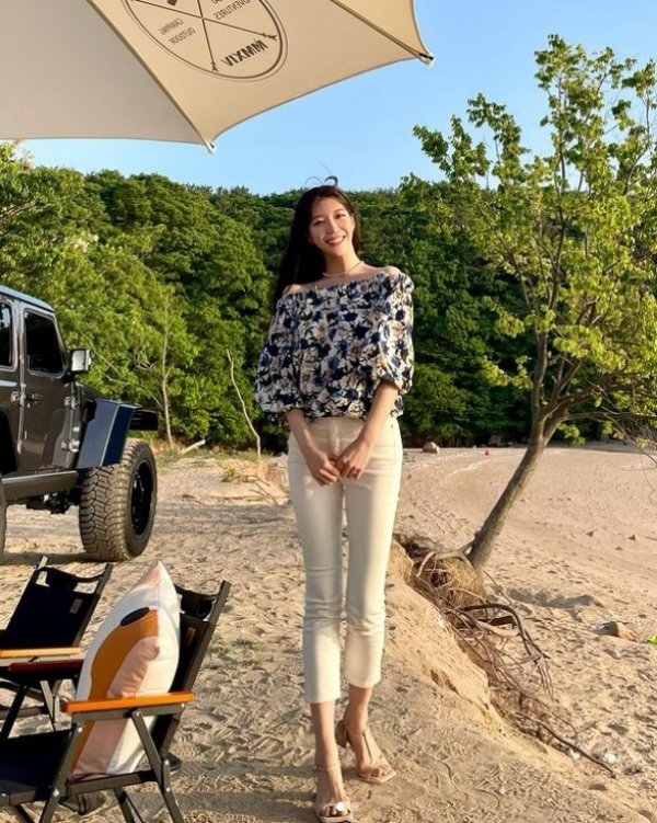 임사랑은 최근 자신의 인스타그램에 "차박 #햇살 맘껏즐기기"라며 모태범과 다녀온 차박 데이트 현장 사진을 공개했다.