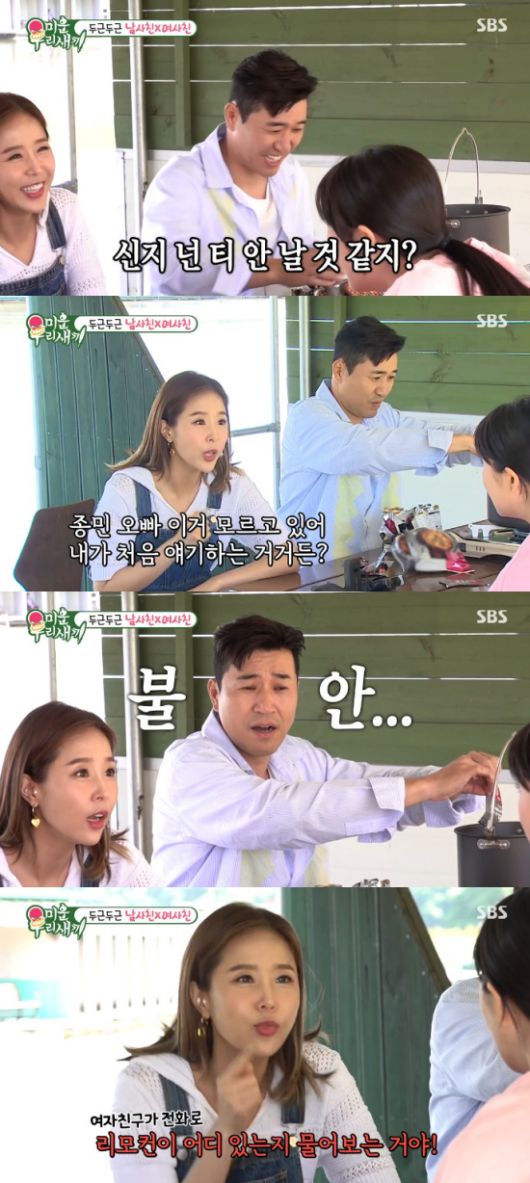 두 사람은 서로의 연애사를 폭로하기도 했다. 먼저 신지는 "종민 오빠는 여자친구를 한 번도 보여준 적이 없는데 나한테 다 걸렸다"며 "매번 아닌 척하고 (여자친구한테) 전화를 하더라"고 말했다.