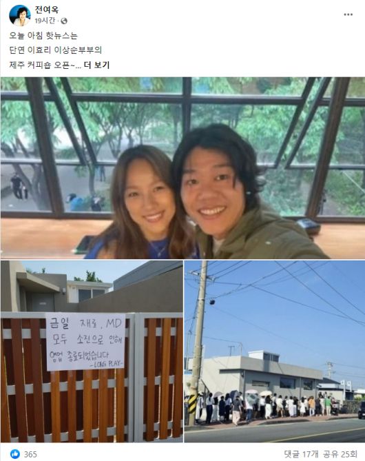 2일 이상순이 운영 중인 카페는 인스타그램에 “오늘 정말 많은 분이 찾아주셨습니다. 더운 날씨에 오랫동안 기다려주신 분들, 재료가 소진돼 더 손님을 받지 못해 돌아가신 분들 너무 감사드리고 죄송하다”라고 적혔다.