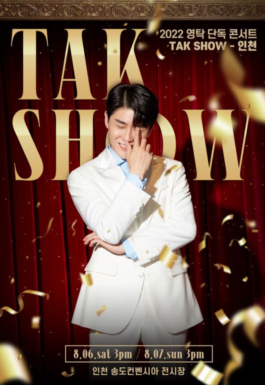2022 영탁 단독 콘서트 ‘TAK SHOW’ 인천 공연은 오는 8월 6일과 7일 양일간 개최된다. 이번 전국투어의 포문을 여는 서울 공연에 폭발적인 반응이 쏟아져, 그 뒤를 이을 인천 공연에도 스포트라이트가 계속될 것으로 기대된다.