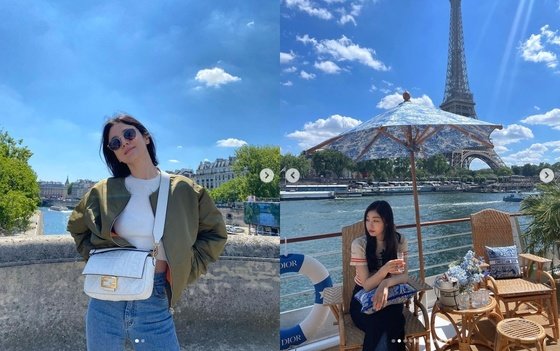 센 강을 배경으로 한 사진에서 송혜교는 선글라스를 착용한 채 편안한 옷차림으로 맑은 날씨를 만끽하고 있다. 김연아는 센 강변에서 파리의 상징 에펠탑을 등지고 사진을 찍어 올렸다.