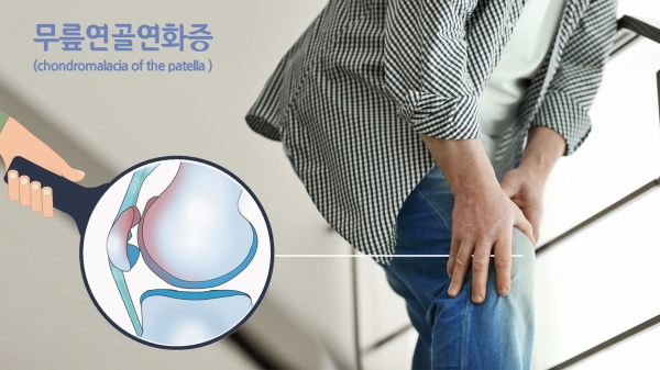 무릎 앞쪽에 볼록 튀어나온 부분이 슬개골인데, 무릎 연골연화증은 바로 슬개골 연골에 외상이나 비정상적인 압력이 반복하여 가해질 때 발병할 수 있다.