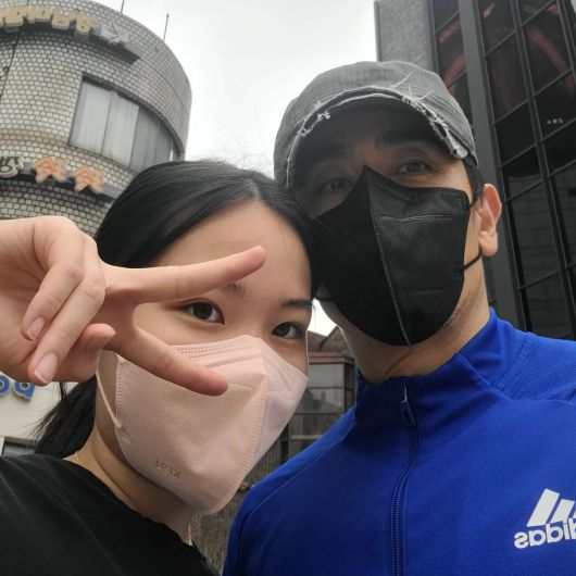 사진에서 차인표는 딸과 아침 운동에 나섰다. 모자를 깊게 눌러 쓴 차인표는 파란색 트레이닝복을 입었고, 검은색 티셔츠와 마스크를 쓴 딸과 운동을 시작했다.