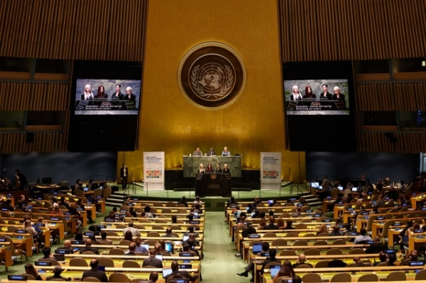 에스파는 전날 오전 9시(현지시간) 미국 뉴욕 유엔본부 총회 회의장에서 열린 '2022 지속가능발전 고위급 포럼'(High Level Political Forum for sustainable development)의 개회 섹션에 참석해 지속가능한 발전을 주제로 연설했다.