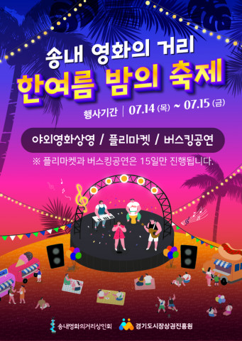 [스타인뉴스 김학철 기자] 경기도시장상권진흥원과 부천 송내 영화의거리 상인회(회장 박광용)는 7월 14일부터 15일까지 ‘2022년 송내 영화의거리 한여름 밤의 축제’가 시작한다고 8일 밝혔다.