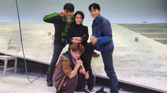 ‘터칭 더 보이드’ 제작사 연극열전 측은 9일 공식 인스타그램에 “사진 찍어줘, 우리들. 나중에 추억이 될 거야 #김선호 조, #손지윤 새라, #정환 사이먼, #정지우 리처드의 첫 공연”이라는 글과 함께 사진을 게재했다.
