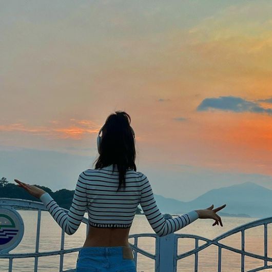 공개된 사진엔 노을이 지는 다리 위에서 포즈를 취한 설현의 모습이 담겼다. 크롭티에 진을 매치한 설현은 입간판 여신다운 8등신 몸매로 감탄을 자아냈다.