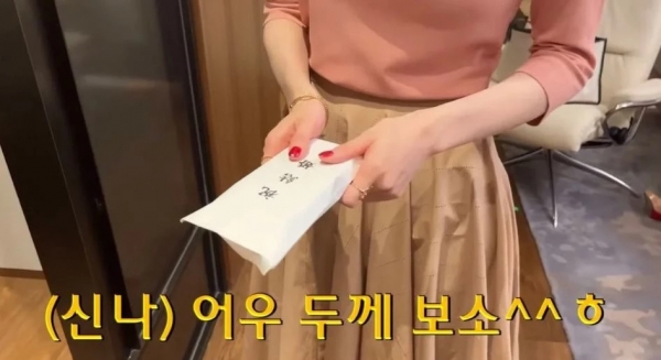 이해리는 강민경의 축의금 봉튜를 보고 "두께보소. 와 대박이다라고 말했다.