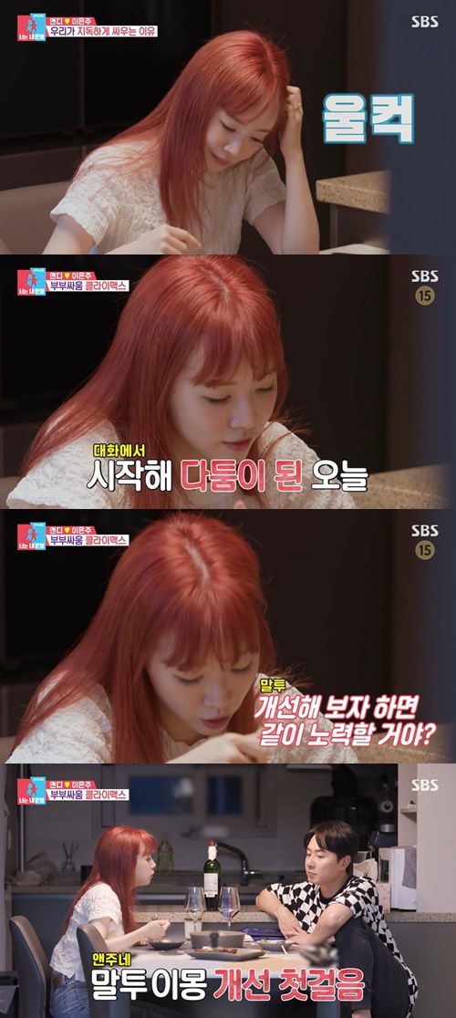 다시 앤디는 은주에게 “진심으로 미안합니다”며 사과했다. 이에 은주는 “내가 뭐 큰 거 바랬나“며 울컥,“내가 나가자고 할 때마다 오빠 표정이 어떤 줄 아냐 아직 신혼인데..”라며 “오늘 홍대 아니고 바로 앞이라도 괜찮았다, 근데 친구 연락엔 바로 나가니까..이 사람은 (친구가 먼저구나 생각했다)”며 서운함을 전했다.