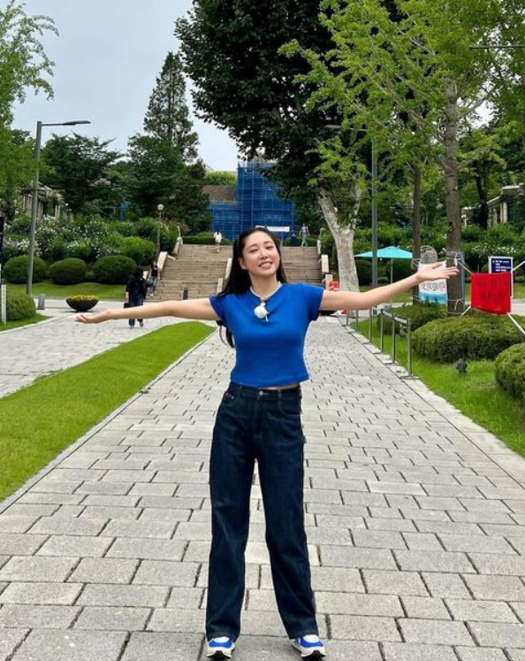 함께 공개한 사진에서 최희는 모교인 연세대학교를 배경으로 포즈를 취했다. 연세대를 상징하는 파란색 상의를 입고, 대학 시절로 돌아간 듯 밝은 미소를 지었다.