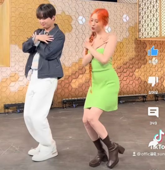 손짓으로 더위를 식히는 동작 후 선미가 턴을 돌며 골반 댄스를 선보이자, 이찬원이 챌린지에 동참하며 선미와 같은(?) 동작의 춤을 시작했다.