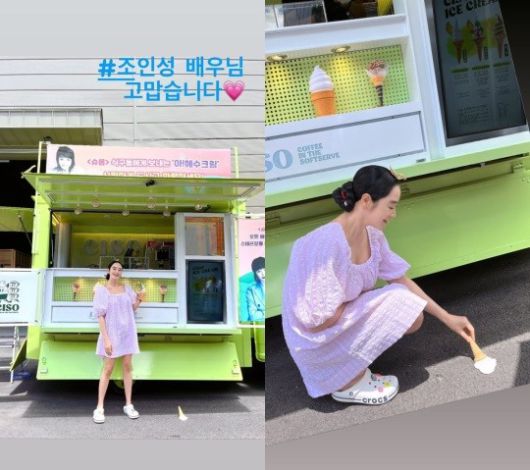 [스타인뉴스 이채원 기자] 배우 조인성이 촬영장에 보낸 아이스크림 차를 배우 김혜수가 고마움을 전하며 인증했다.