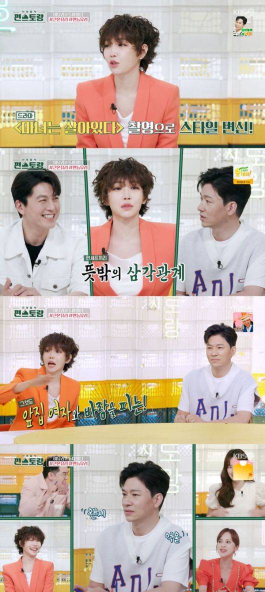 이날 정상훈과 이유리가 스튜디오를 찾았다. 이유리는 달라진 스타일에 "지금 드라마 촬영 중이어서 스타일 변화를 줬다"고 말했다. 이어 "정상훈하고 부부다. KBS에선 류수영하고 부부였다. 양쪽이 다 남편이다"고 말해 주위를 놀라게 했다.