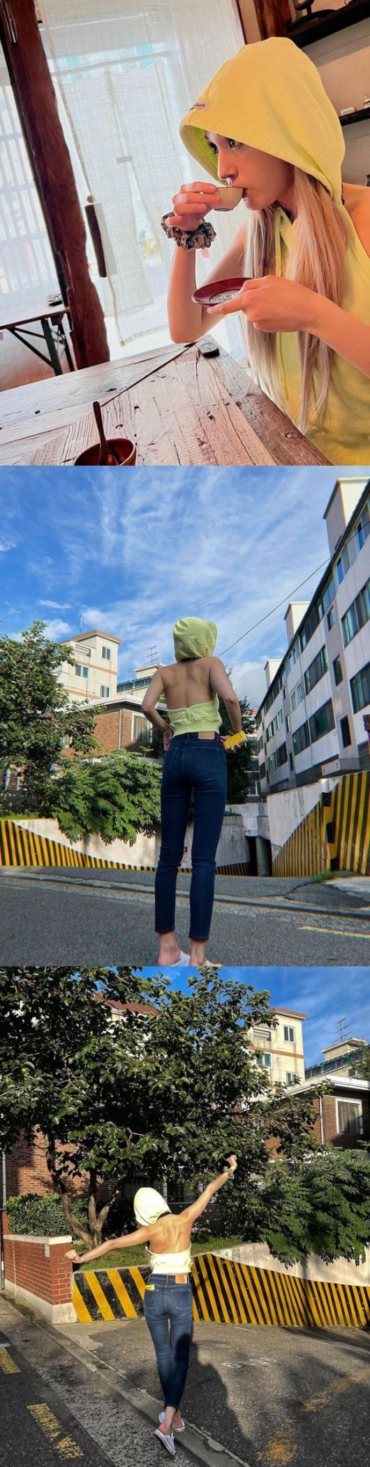 공개된 사진 속에는 자하 주차장 앞에서 포즈를 취하고 있는 전소미의 모습이 담겼다. 오프숄더 후드티를 입은 그는 팔을 양 옆으로 쭉 뻗으면서 오후 햇살을 만끽하고 있다. 그 중에서도 군살 없이 울퉁불퉁한 등 근육이 시선을 끌었다.