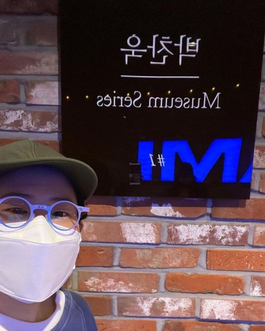 공개된 사진 속에는 영화관을 방문한 김신영의 모습이 담겼다. 김신영은 박찬욱관 앞에서 인증샷을 찍고 있다.