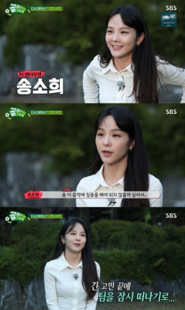 앞서 송소희는 '골때녀' FC 원더우먼 멤버로 활약했으나 27일 방송분을 마지막으로 하차했다.