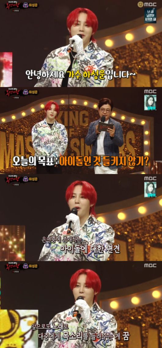하성운은 '복면가왕' 출연 목표를 밝히기도 했다. 그는 "아이돌들도 아이돌 음악 말고도 좋아하고 잘한다. 저도 그냥 저인 걸 들키고 싶지 않았다"고 말했다.