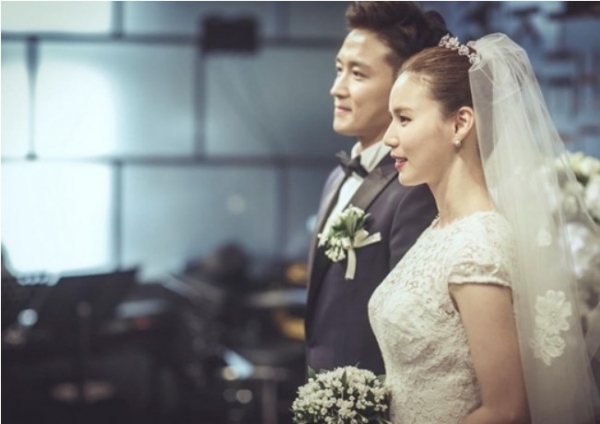 진태현은 글과 함께 박시은과의 결혼식날 사진을 공개하며 애정을 드러냈다. 사진 속 두사람은 선남선녀 모습으로 한곳을 응시하고 있다.
