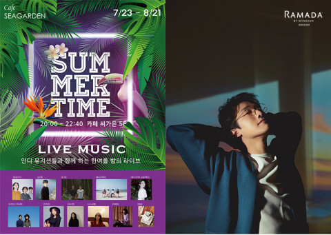 한여름 밤, 5층 테라스 카페 씨가든에서 바다를 바라보며 바다의 풍미를 즐길 수 있는 다채로운 메뉴와 함께 인디 뮤지션들의 감미로운 라이브 뮤직 공연을 함께 즐길 수 있다.