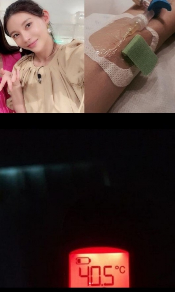 공개된 사진에는 열이 40.5도 까지 올라 응급실에서 치료를 받고 있는 차예련의 모습이 담겨있다. 가녀린 팔에 꽂힌 링거 바늘이 안쓰러움을 안긴다.