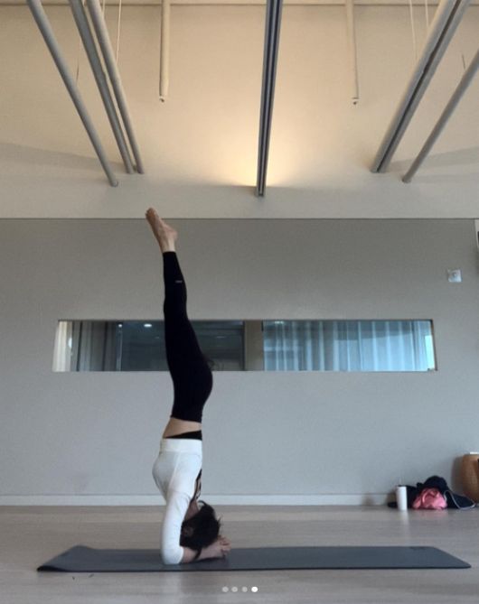 사진 속 원진아는 요가복을 입고 매트 위에서 요가 자세를 취하고 있다. 특히 원진아는 팔과 머리로 지탱하면서 꼿꼿한 물구나무서기까지 선보이면서 남다른 요가 실력을 과시하고 있다.