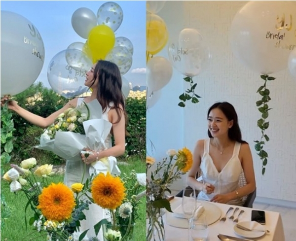 공개된 사진 속에는 손연재의 모습이 담겼다. 9살 연상 연인과 결혼을 앞둔 그는 친구들이 준비한 브라이덜 샤워로 행복한 미소를 짓고 있다.