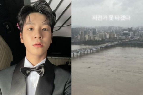 [스타인뉴스 이상백 기자] 가수 정동원이 지난 9일 한강뷰 자택에서 집중호우로 불어난 한강 사진을 찍어 올리며 "자전거 못 타겠다"는 글을 남긴 것을 두고 네티즌들 사이에서 논란이 됐다.