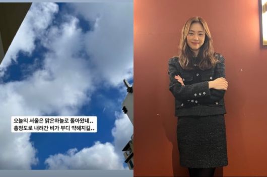 이연희는 10일 자신의 인스타그램 스토리에 "오늘의 서울은 맑은 하늘로 돌아왔네"라는 글과 함께 사진 한 장을 게재했다.
