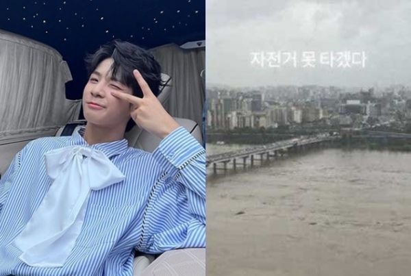정동원은 지난 9일 자신의 인스타그램 스토리에 "자전거 못 타겠네"라는 글과 함께 사진 한 장을 게재했다. 공개된 사진 속에는 집중 호우로 물이 불어난 한강의 모습이 담겨 있다.
