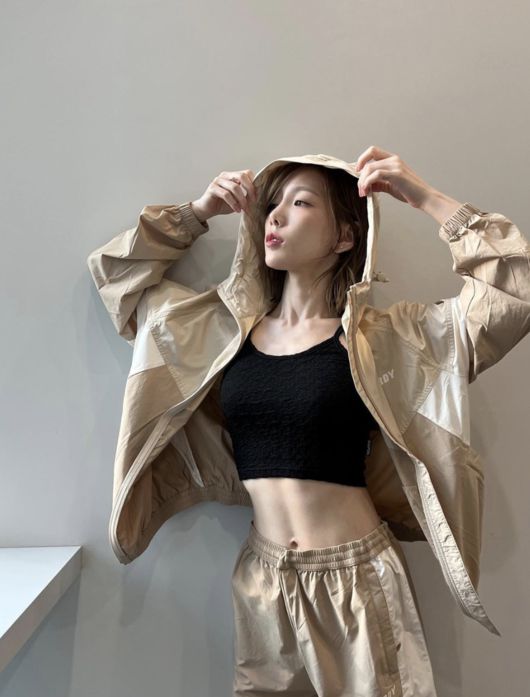 트레이닝복 세트로 갖춰 입은 태연은 안에 크롭톱을 걸쳐 선명한 복근을 드러냈다. 식단과 함께 운동으로 관리한 건강한 몸매가 돋보인다.