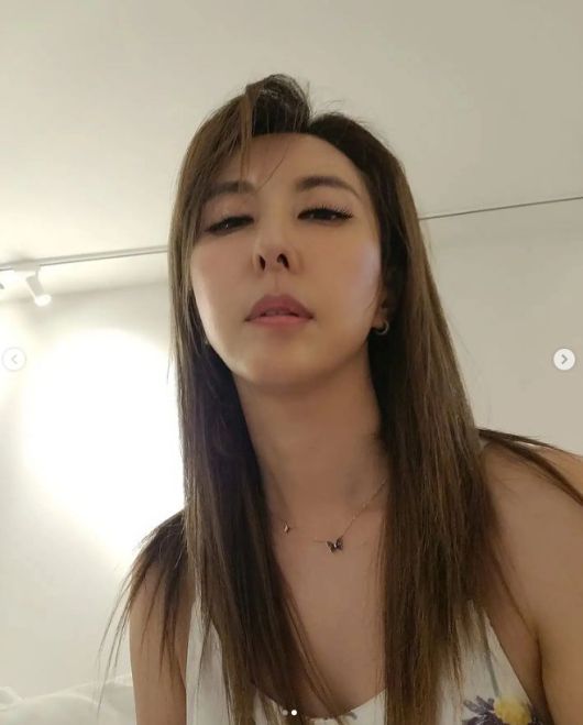 ‘54세 비혼’ 김완선은 다소 지친 듯한 표정으로 카메라를 응시하며 셀카를 찍고 있는 모습이다.