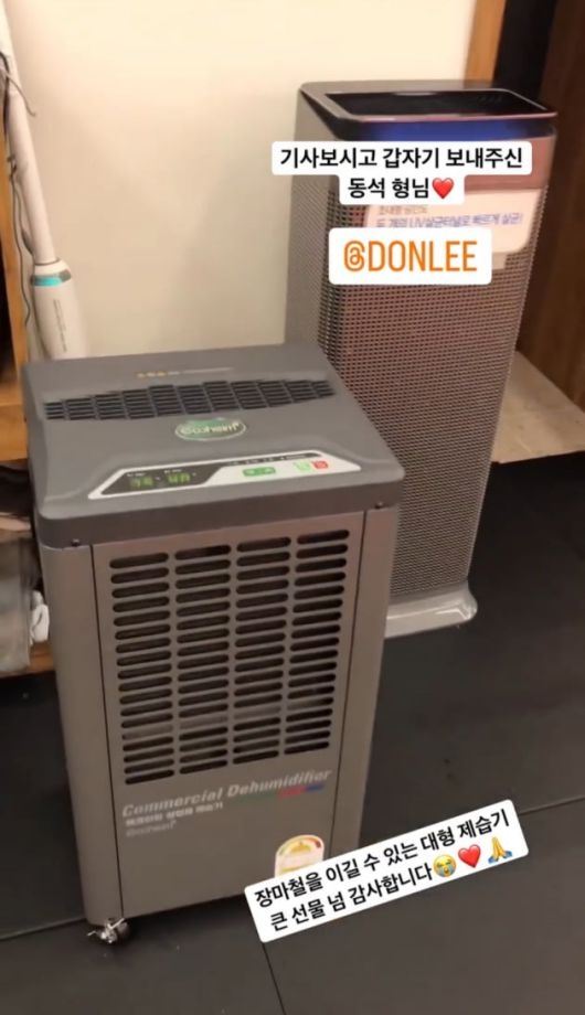 이어 "장마철을 이길 수 있는 대형 제습기 큰 선물 너무 감사합니다"라고 덧붙였다.
