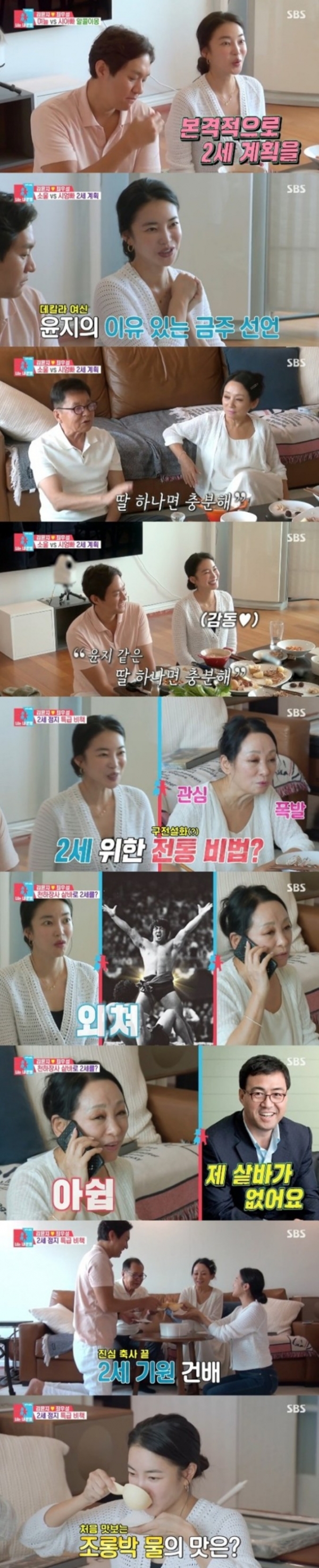 이날 이상해는 밥을 먹던 중, 김윤지와 마시기 위해 10년 된 생강나무술을 꺼냈다. 하지만 김윤지는 “어떡하죠? 제가 술을 이제 못 마신다. 술을 끊었다”면서 “저희가 이제 본격적으로 2세를 가져보려고 하고 있다”라고 밝혔다.