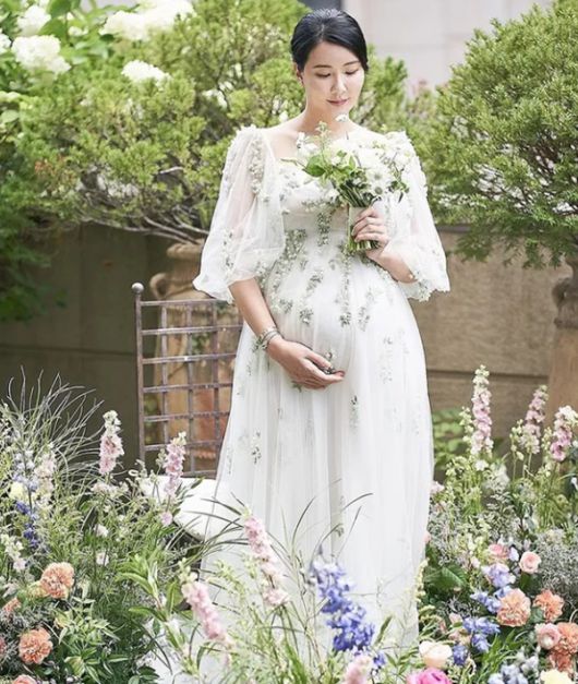 사진 속엔 웨딩드레스를 연상케 하는 옷을 입은 장미인애의 모습이 담겼다. 특히 출산이 얼마 남지 않은 듯 만삭의 배가 눈길을 끈다.