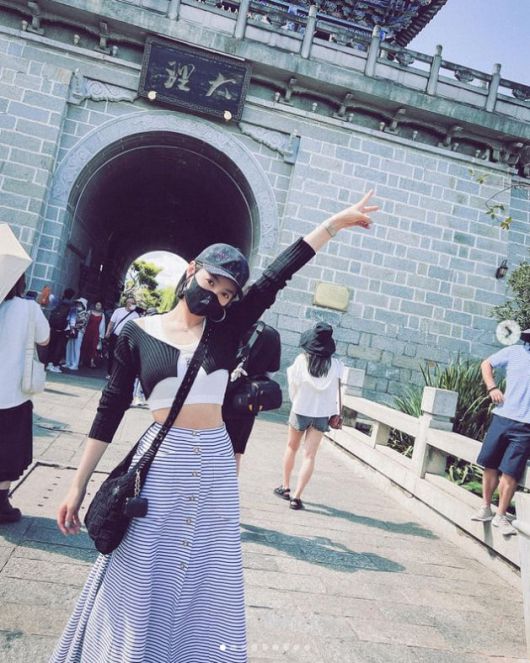 공개된 사진에는 빅토리아가 중국 윈난성 대리고성을 방문한 모습이 담겼다. 한 명품 브랜드 모자와 선글라스를 쓴 빅토리아는 민소매 크롭톱에 볼레로 카디건을 걸치고, 긴 치마를 입은 채 늘씬한 허리 라인을 드러낸 모습이 담겼다.
