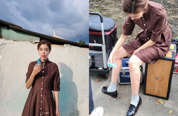 김규리는 야외에서 촬영 중 모기에 물린 근황을 공개했다. 곳곳에 생긴 모기 물린 자국이 안타까움을 자아냈다.
