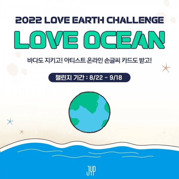 JYP 엔터테인먼트가 9월 17일 국제 연안정화의 날을 맞이하여 바다를 보호하기 위한 러브어스챌린지를 4주간 진행한다.