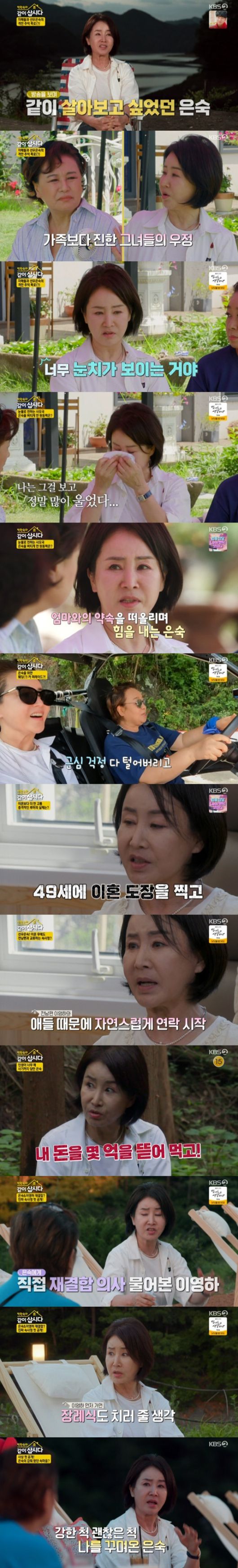 선우은숙은 주위에서 전남편 이영하와의 재결합을 많이 기대했다고 밝히며, 이영하가 선우은숙에게 직접 재결합 의사를 물어 놀랐던 적이 있다고 고백했다. 이에 선우은숙은 "잘 지내고, 나쁠 것도 없고 다 좋지만, 사랑의 감정이 아니라 애들 아빠 죽으면 장례 치러줄 수도 있다"라고 자신의 진심을 전했다. 또, 선우은숙은 자식이 채워 줄 수 없는 외로움을 고백, 이를 이해해주는 자매들에 "정말 외롭다, 강한 척한다"라고 솔직한 마음을 털어놓으며 울컥한 모습을 보였다.