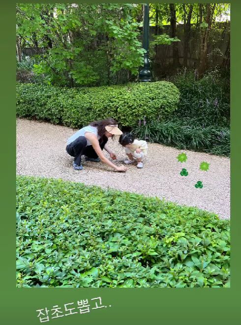 최지우는 24일 자신의 인스타그램 스토리에 “잡초도 뽑고, 업고”라는 글과 함께 여러 장의 사진을 게재했다.