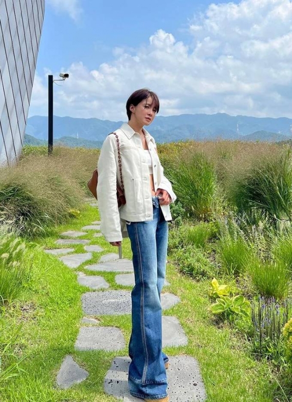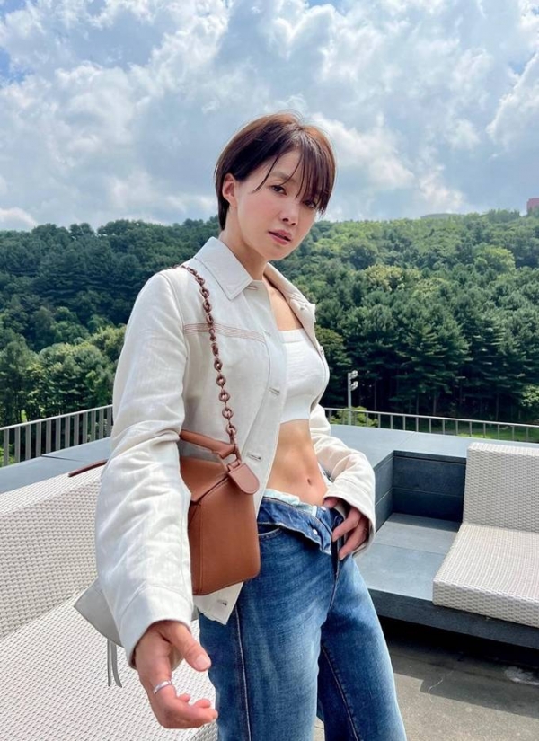 공개한 사진에서 이시영은 긴 생머리를 과감히 자른 숏컷에 청바지 지퍼를 살짝 풀러 내려 입은 파격적인 스타일을 선보였다.