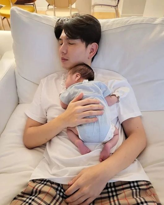 [스타인뉴스 김은영 기자] 최근 출산한 개그우먼 겸 방송인 홍현희가 아들을 안고 잠든 남편 제이쓴의 모습을 공개했다.