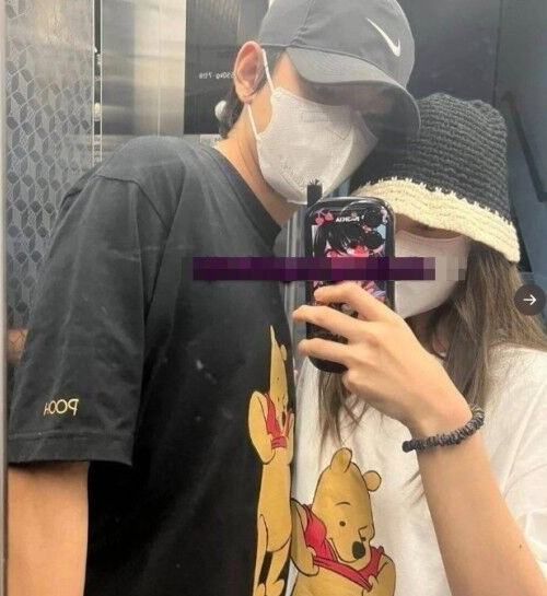 앞서 온라인 커뮤니티, SNS에서는 모자와 마스크를 착용한 남녀가 엘리베이터 안에서 얼굴을 맞대고 있는 모습이 담긴 사진이 확산됐다.