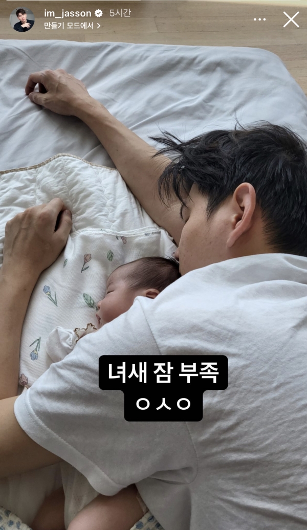 제이쓴은 인스타그램에 '요새 잠 부족'이라며 사진을 게시했다.