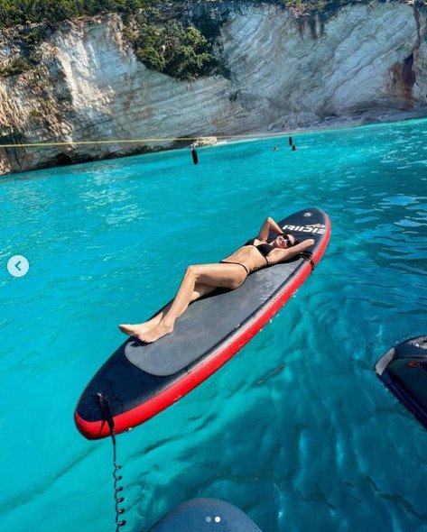 사진에서 데미 무어는 에메랄드 빛의 맑은 물을 자랑하는 자연에서 패들보트 위에 앉아있는 모습이다. 그는 패들보트 위에 누워 늘씬한 비키니 몸매를 자랑했다. 그의 과감한 포즈 또한 눈길을 모은다.